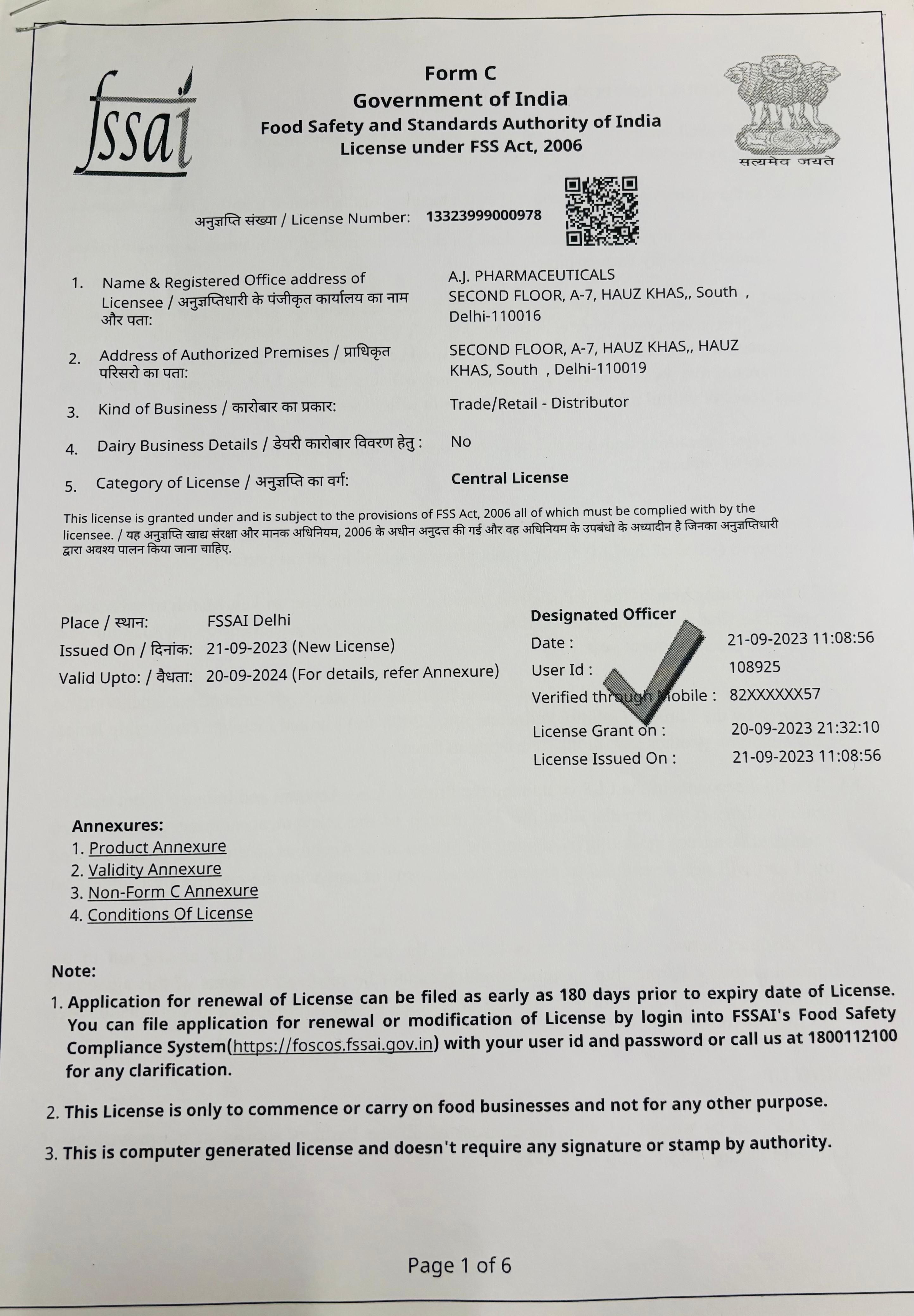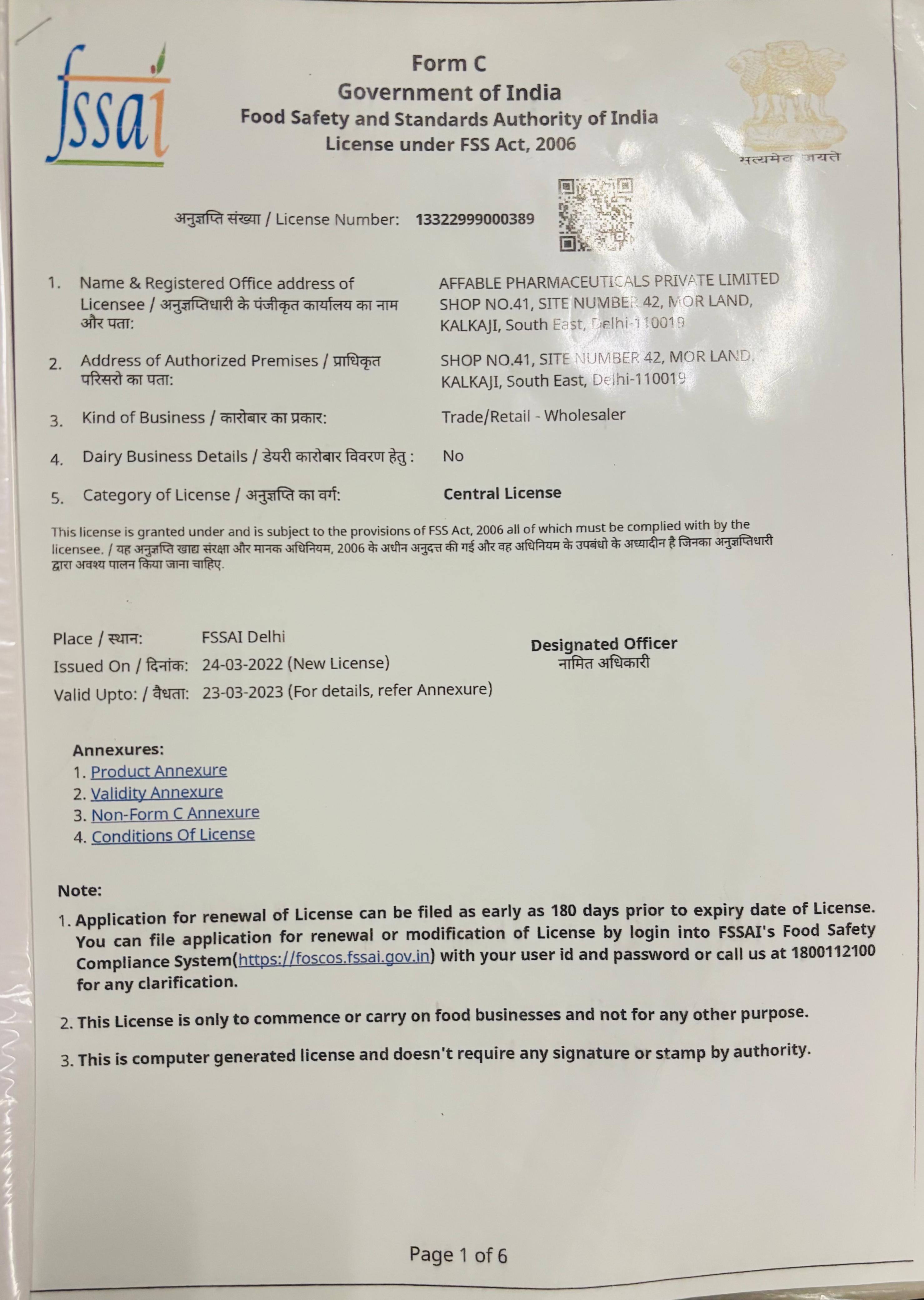 The Central FSSAI License is the highest category of food license issued by the Food Safety and Standards Authority of India (FSSAI) under the Food Safety and Standards Act, 2006. It is mandatory for large-scale food businesses operating across multiple states or having an annual turnover of more than ₹20 crores.