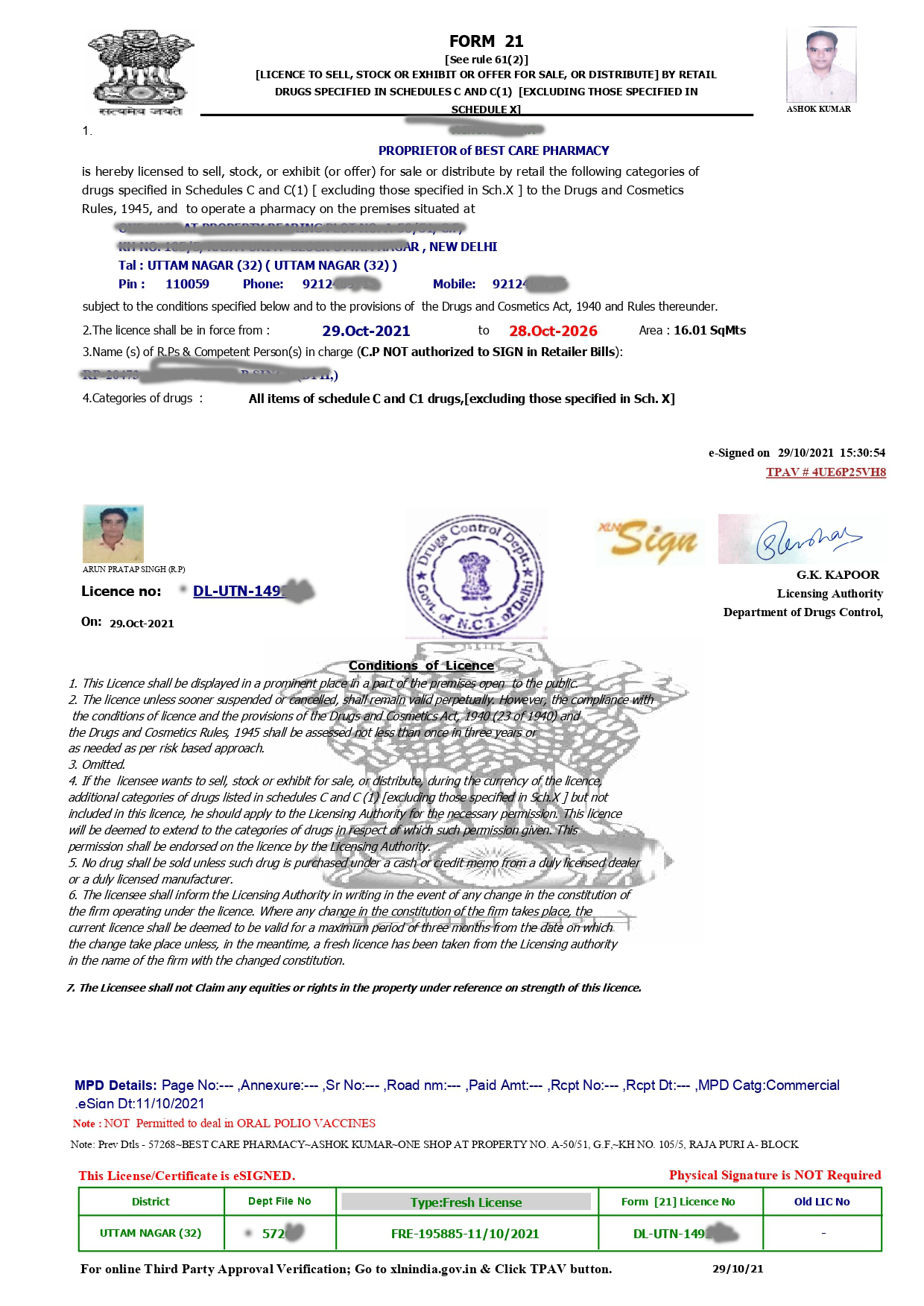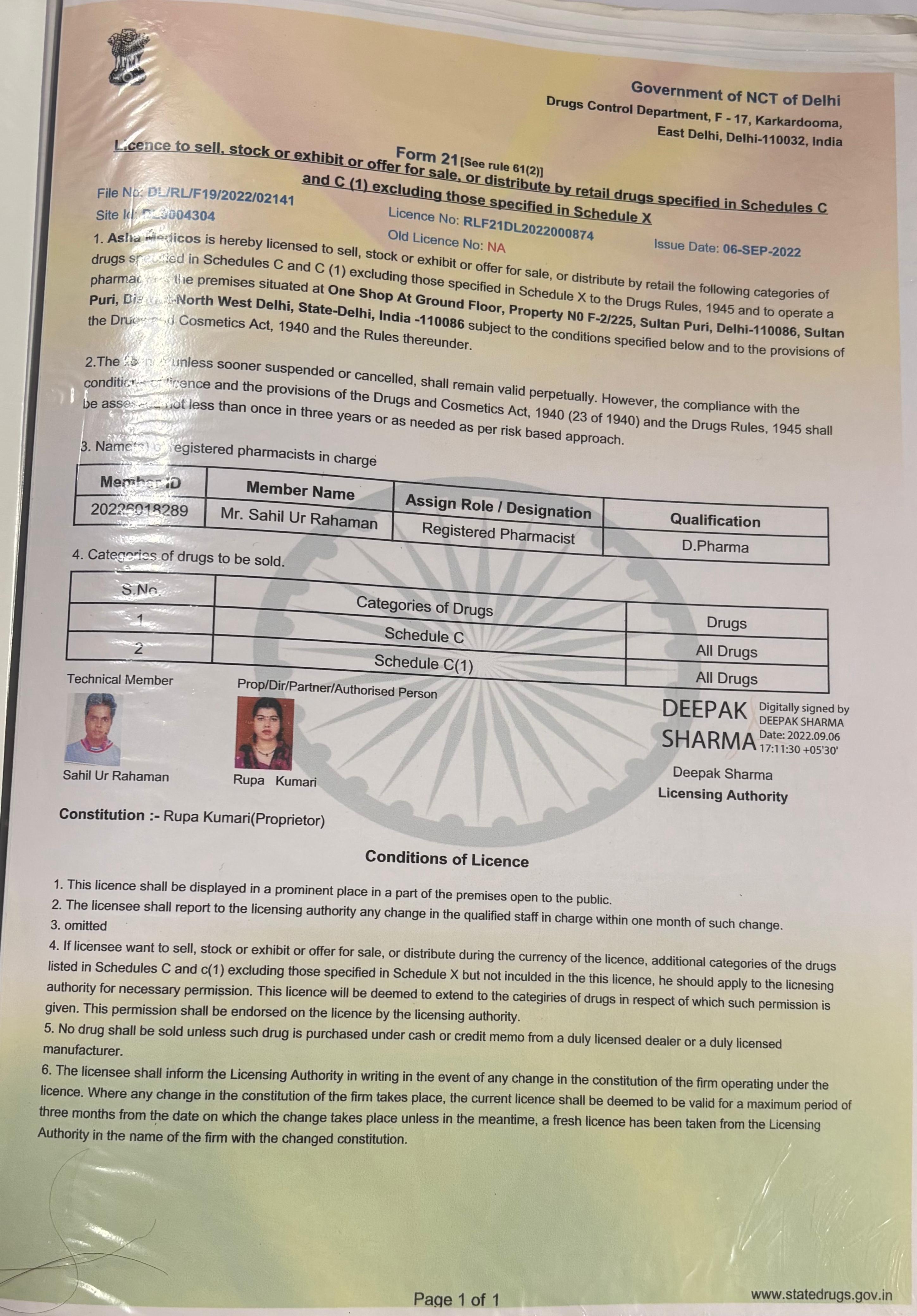 - PHOTOGRAPH OF PROPRIETOR/PHARMACIST/DIRECTORS/COMPETENT PERSON & MOBILE NO.