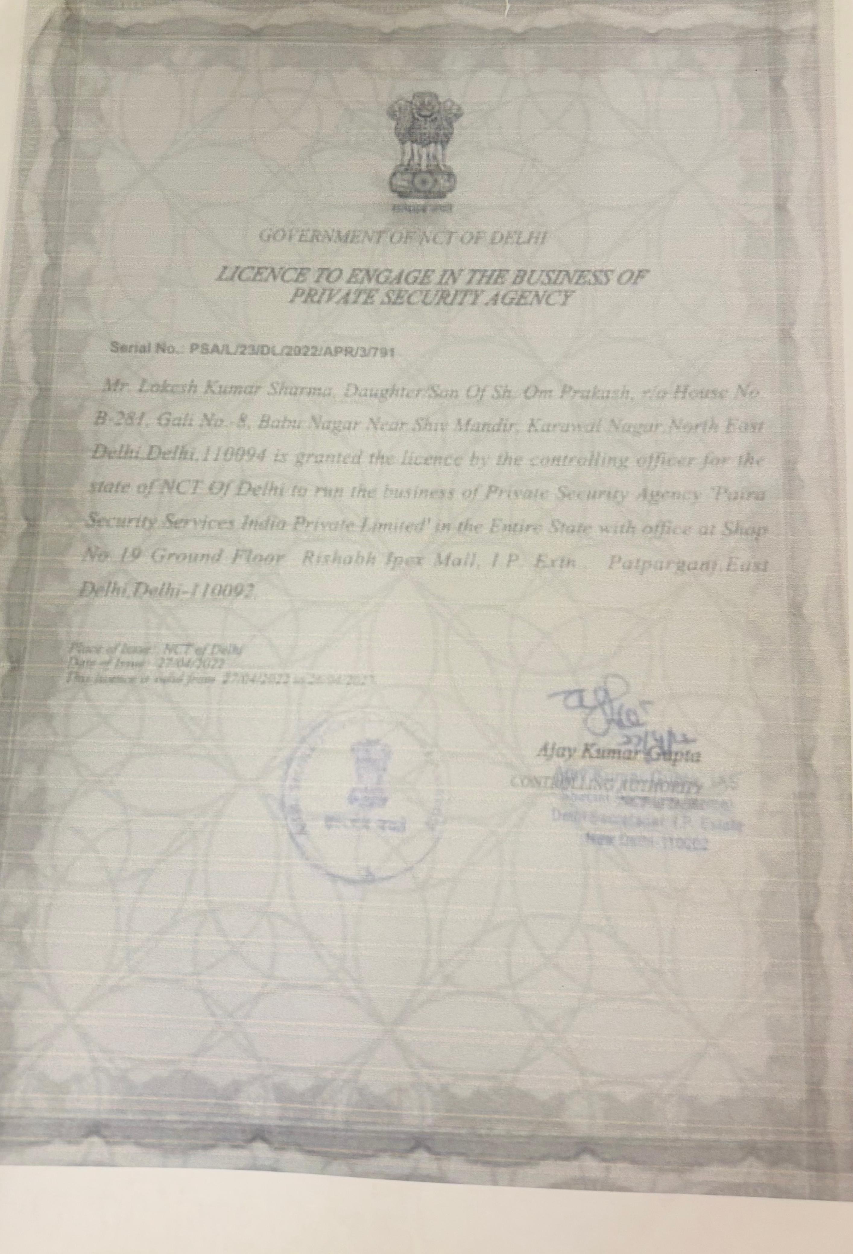 • Proof of legal occupancy of the establishment or allotment letter of Govt. agency/tenancy proof (rent agreement)/latest paid bill of electricity/DJB/Land line phone/Lease deed/Sale deed/GPA.(Mandatory)
